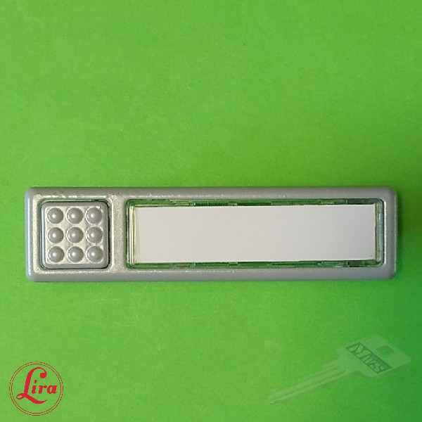 LIRA Namensschildtaster NT1520.7035 Gehäuse und Knopf aus Zinkdruckguß RAL 7035 lichtgrau pulverbeschichtert Abdeckung Rauchglas mit neutraler Einlage