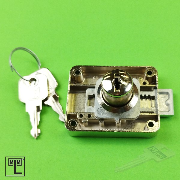 Mit PRESTIGE-Zylinder auswechselbar Durchmesser: 18 mm Material: Metallguß vernickelt Dornmaß: durch Umstellung verwendbar für 15, 20, 25, 30, 35, 40 mm, sh. Hinweis Verwendbar: rechts und links Funktion: Schließbewegung 180°, 2 Abzüge Zubehör: 1 Rosette Hinweis: Vor allen Umstellungen den Riegel zurückschließen und den Schlüssel abziehen. Weitere MLM Produkte bitte anfragen